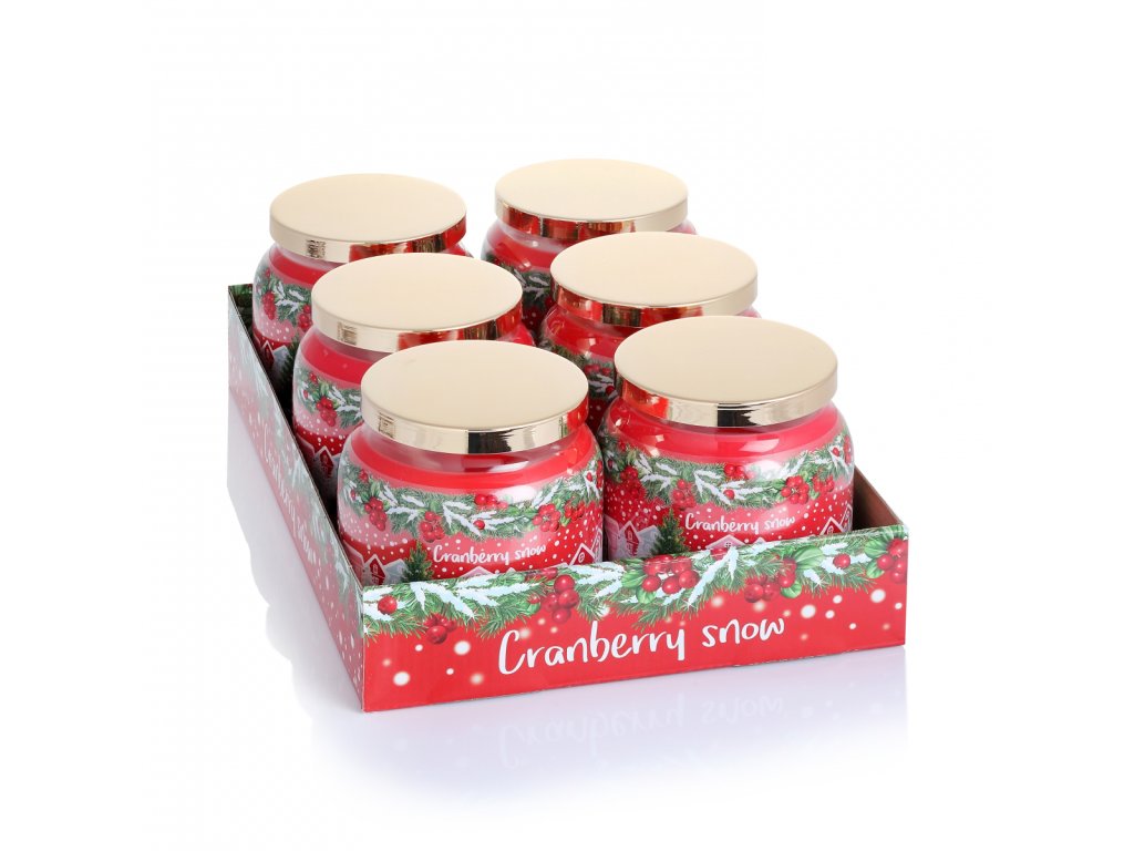 Cranberry Snow s viečkom 450g sviečka v skle BARTEK