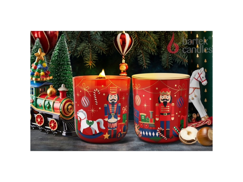 NUTCRACKER s víčkem 150 g svíčka ve skle Bartek je ztělesněním Vánoc – hřejivá, sladká a plná kouzla. Vnese do vašeho domova světlo, radost a vůni sváteční pohody.