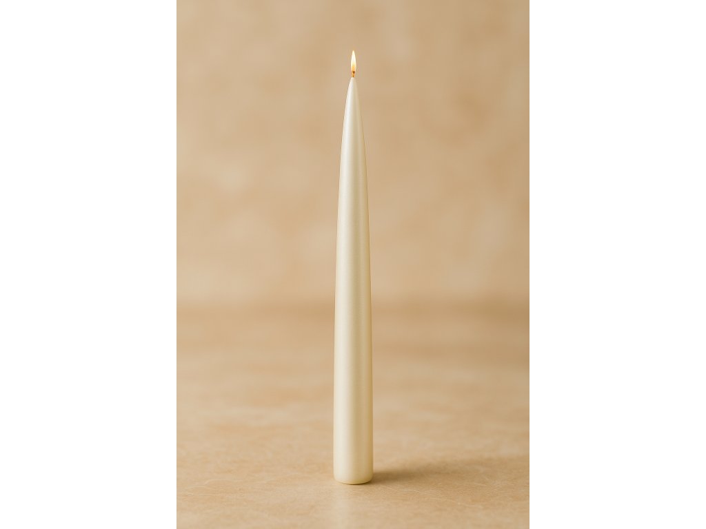 - Popis: Kónická svíčka v elegantní bílém perlovém odstínu. Perlový efekt dodává svíčce jemný lesk a sofistikovaný vzhled. Ideální pro romantické nebo formální události.