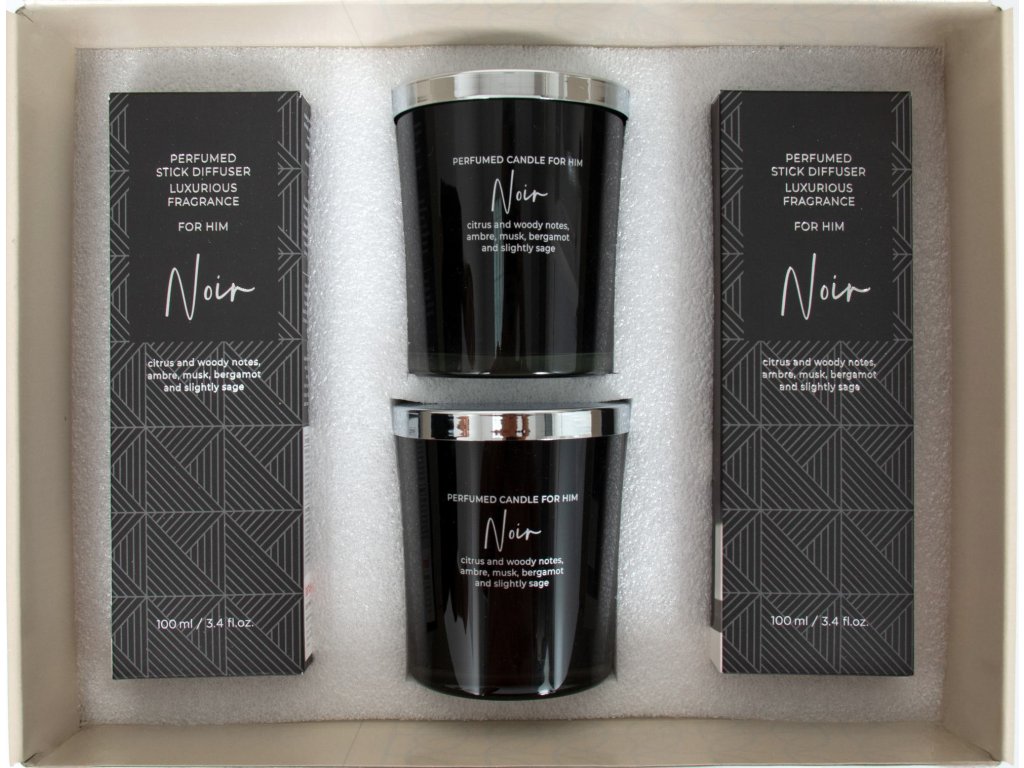 2× Difuzér For Him (100 ml) – elegantný difuzér s tyčinkami, ktorý neustále uvoľňuje jemnú, no výraznú arómu.