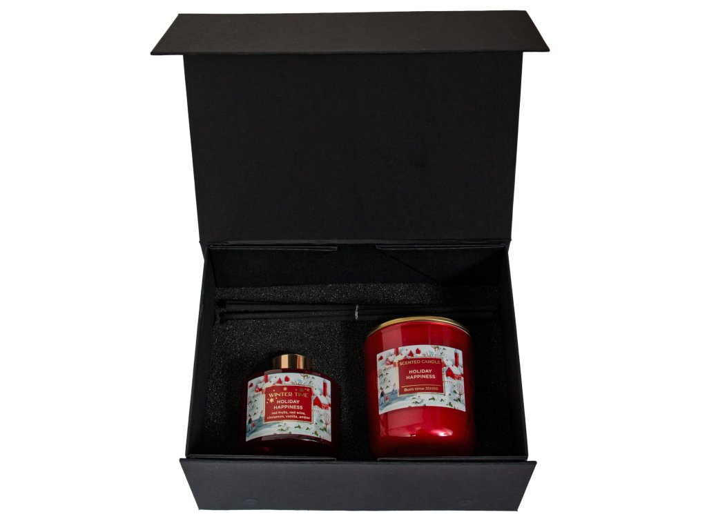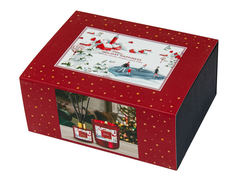 Vychutnajte si kúzlo sviatočných chvíľ s darčekovým setom Holiday Happiness, ktorý spája teplo, vôňu domova a atmosféru pokoja. Tento elegantný set je dokonalým darčekom pre vašich blízkych alebo pre vás samotných – prinesie do vášho priestoru sviatočnú náladu a útulnosť.
