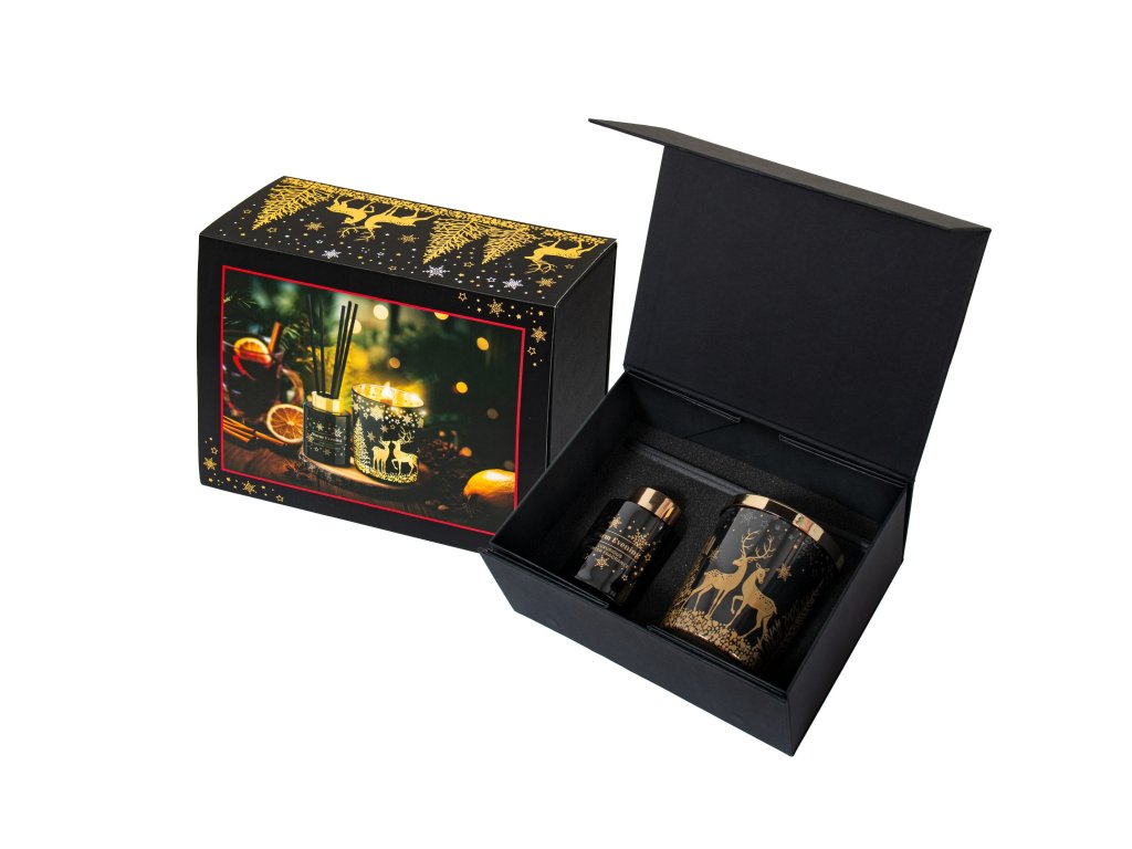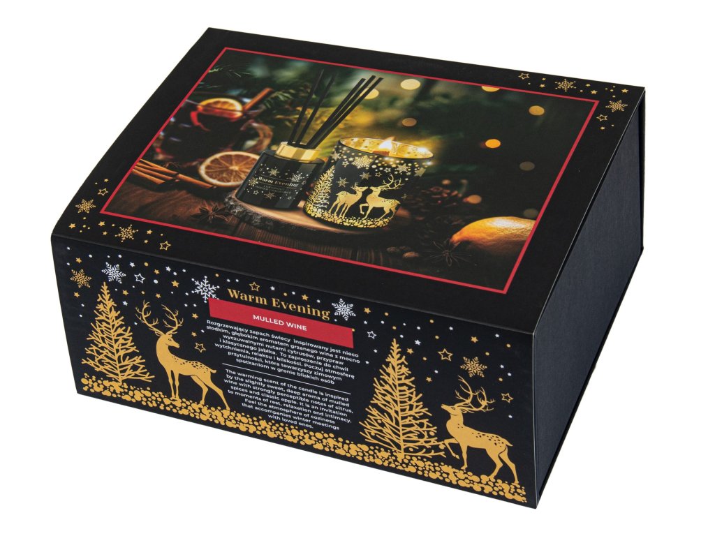 1× Aromatická sviečka (150 g) – s vôňou vareného vína, ktorá kombinuje tóny červeného vína, škorice, klinčekov a citrusov.
