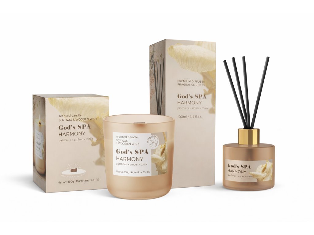 Doprajte si pocit rovnováhy a pokojnej harmónie. Set GOD´S SPA HARMONY spája jemnú, vyváženú vôňu s elegantným dizajnom, ktorý premení váš interiér na miesto pokoja a relaxu. Ideálna kombinácia pre tých, ktorí vyhľadávajú ticho, pohodu a prirodzenú eleganciu.