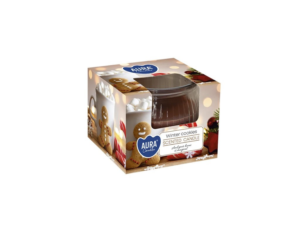 Vychutnajte si sladkú vôňu Vianoc so sviečkou Winter Cookies 80 g od značky Aura Candles. Hrejivá aróma čerstvo upečených perníkov, vanilky a karamelu vytvára atmosféru domova, sviatočnej pohody a detských spomienok. Ideálna pre zimné obdobie, keď chcete svoj domov prevoňať sladkosťou a teplom.