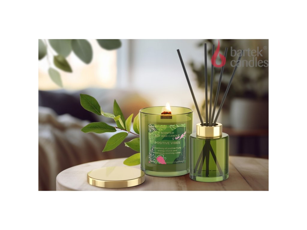 Vneste do svojho domova optimizmus a dobrú náladu s vôňou, ktorá rozžiari každý deň. Vonný difuzér Positive Vibes od Bartek Candles prináša sviežu kombináciu ovocných, citrusových a zelených tónov, doplnených o jemné upokojujúce akordy. Vôňa pôsobí povzbudzujúco, čistí myseľ a navodzuje pocit sviežosti a rovnováhy.